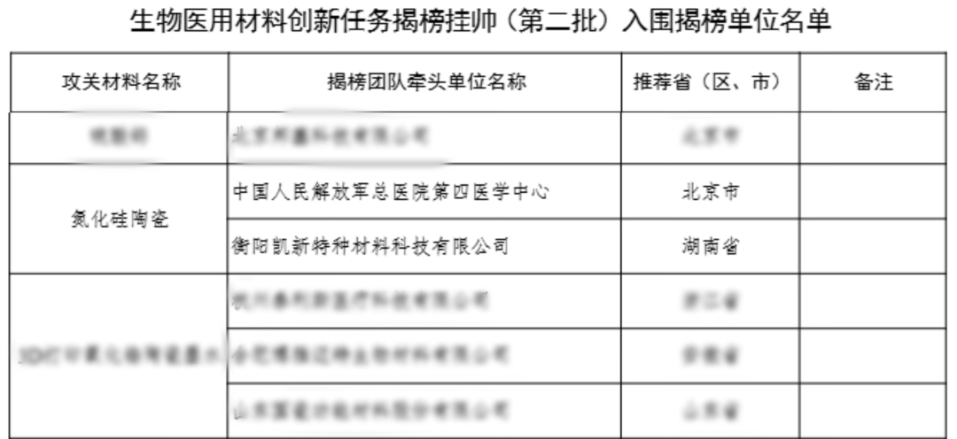 根据工业和信息化部办公厅、国家药品监督管理局综合和规划财务司《关于公布生物医用材料创新任务揭榜挂帅(第二批)入围揭榜单位的通知》,中国人民解放军总医院第四医学中心与衡阳凯新特种材料科技有限公司申报的氮化硅陶瓷项目成功揭榜。这标志着我国在高端生物医用材料领域迈出关键一步,有望打破国外企业对氮化硅陶瓷口腔种植体技术的长期垄断。